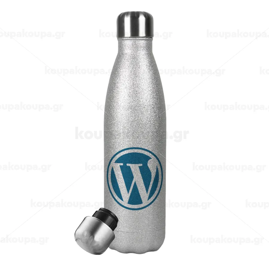 Wordpress, Μεταλλικό παγούρι θερμός Glitter Aσημένιο (Stainless steel), διπλού τοιχώματος, 500ml