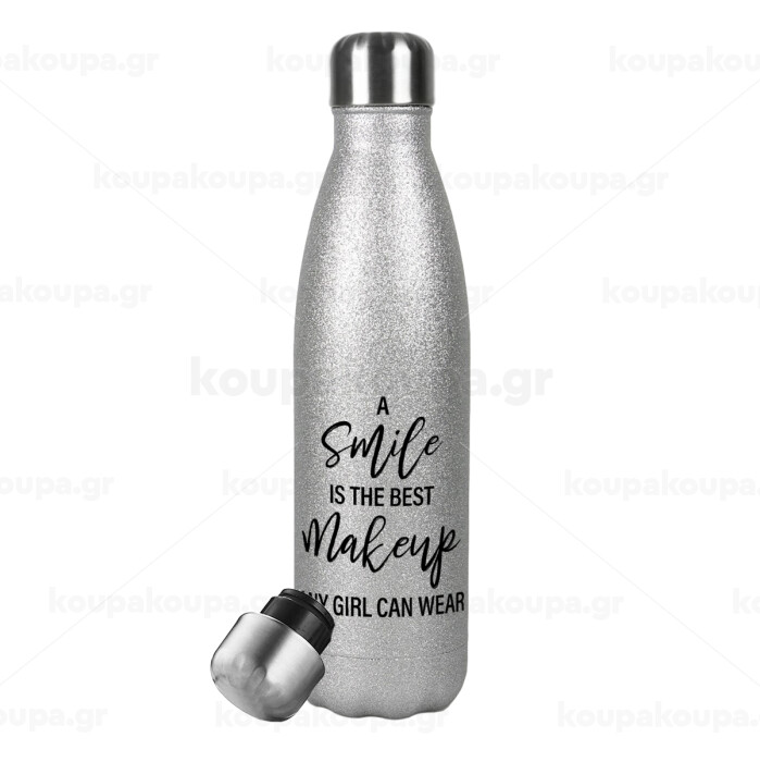 A slime is the best makeup any girl can wear, Μεταλλικό παγούρι θερμός Glitter Aσημένιο (Stainless steel), διπλού τοιχώματος, 500ml