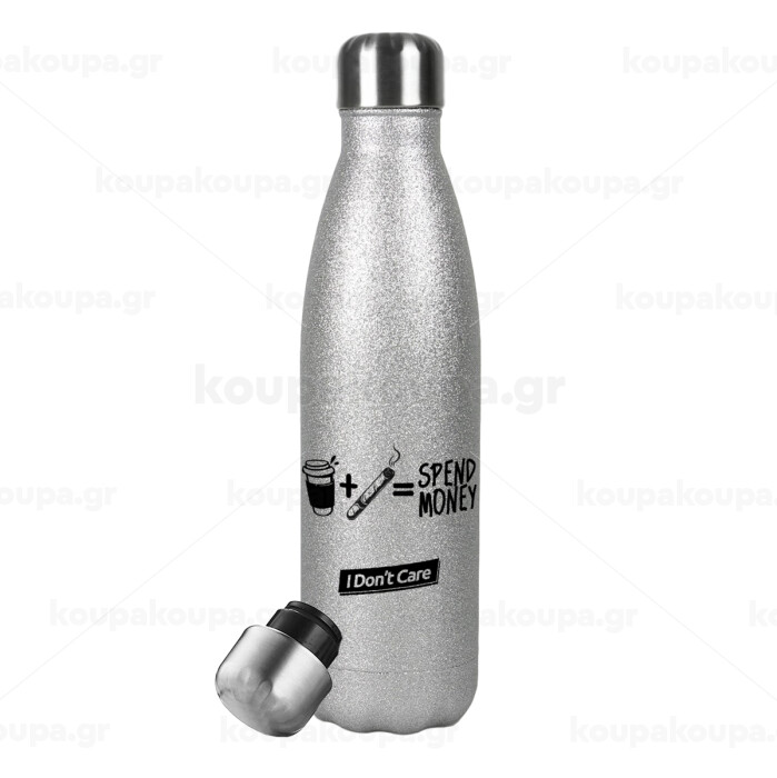 Spend Money, Μεταλλικό παγούρι θερμός Glitter Aσημένιο (Stainless steel), διπλού τοιχώματος, 500ml