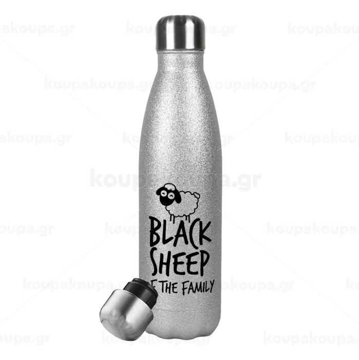 Black Sheep of the Family, Μεταλλικό παγούρι θερμός Glitter Aσημένιο (Stainless steel), διπλού τοιχώματος, 500ml