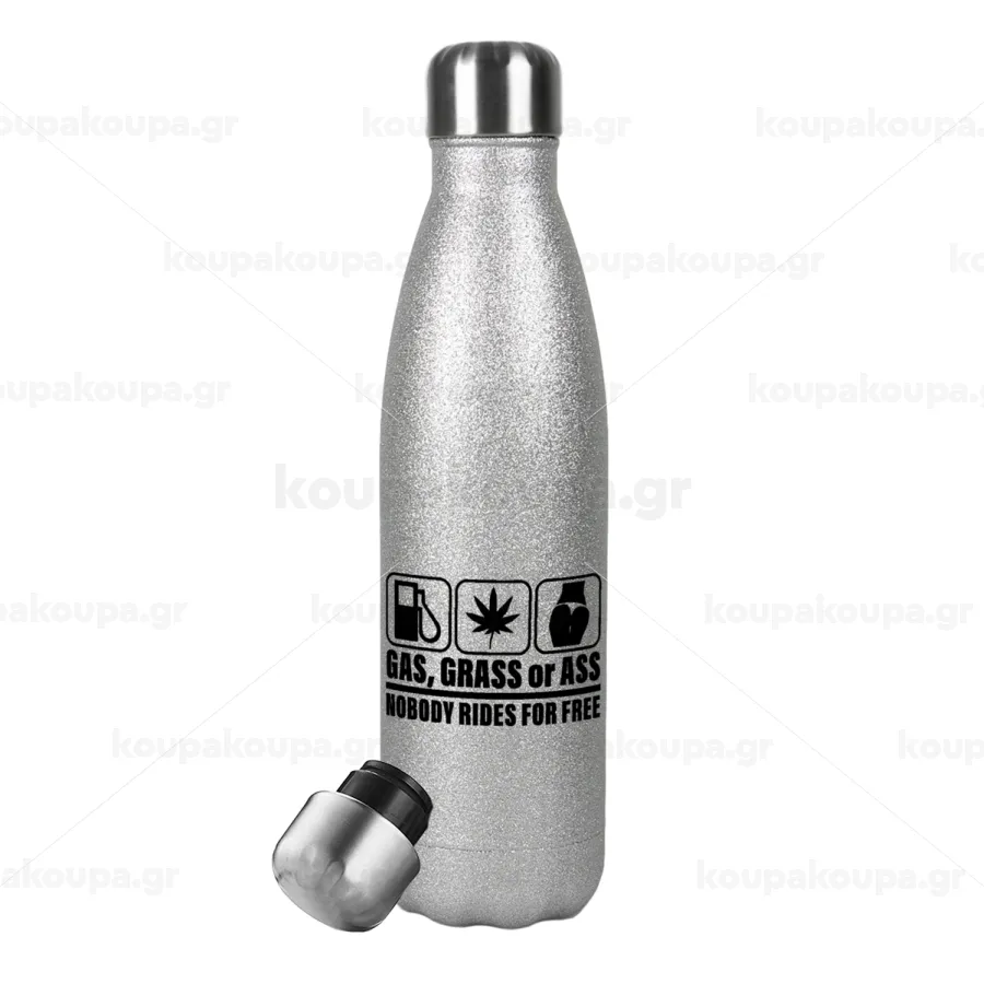 Gas, Grass or Ass, Μεταλλικό παγούρι θερμός Glitter Aσημένιο (Stainless steel), διπλού τοιχώματος, 500ml