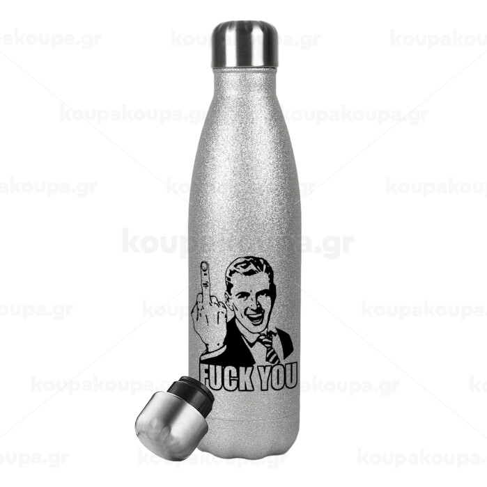 The finger, Μεταλλικό παγούρι θερμός Glitter Aσημένιο (Stainless steel), διπλού τοιχώματος, 500ml