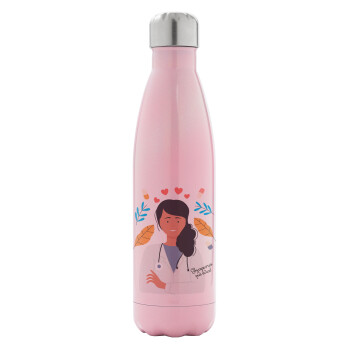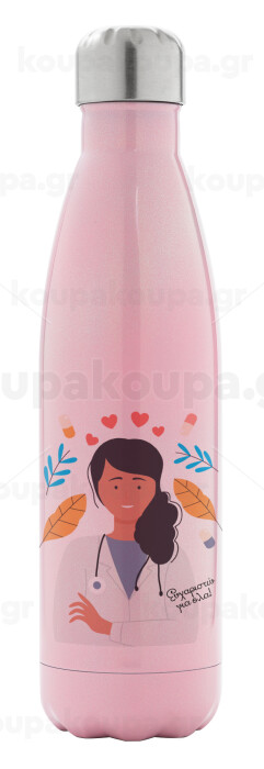 Ευχαριστώ για όλα γιατρέ, Μεταλλικό παγούρι θερμός Ροζ Ιριδίζον (Stainless steel), διπλού τοιχώματος, 500ml