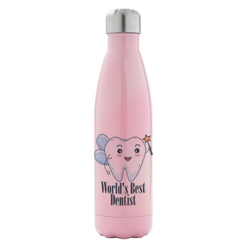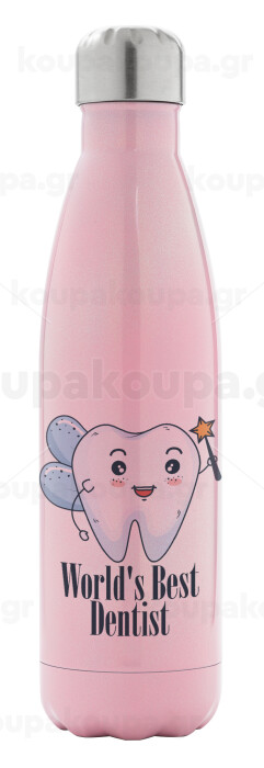 World's Best Dentist, Μεταλλικό παγούρι θερμός Ροζ Ιριδίζον (Stainless steel), διπλού τοιχώματος, 500ml