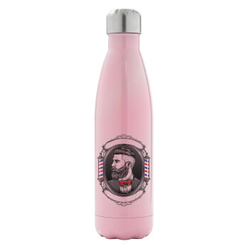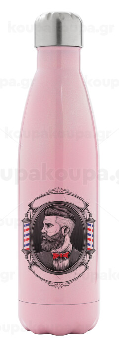 Barber shop, Μεταλλικό παγούρι θερμός Ροζ Ιριδίζον (Stainless steel), διπλού τοιχώματος, 500ml