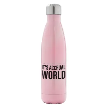 It's an accrual world, Μεταλλικό παγούρι θερμός Ροζ Ιριδίζον (Stainless steel), διπλού τοιχώματος, 500ml