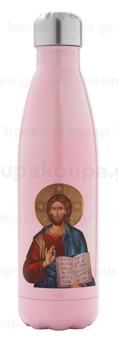 Ιησούς, Μεταλλικό παγούρι θερμός Ροζ Ιριδίζον (Stainless steel), διπλού τοιχώματος, 500ml