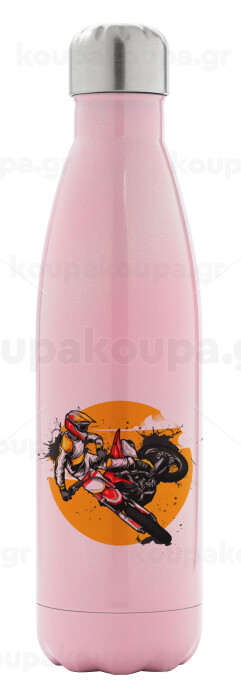 Motocross, Μεταλλικό παγούρι θερμός Ροζ Ιριδίζον (Stainless steel), διπλού τοιχώματος, 500ml