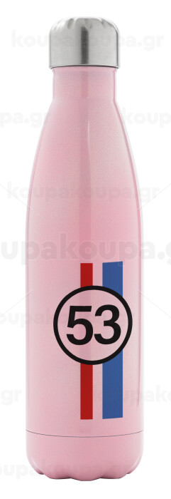 VW Herbie 53, Μεταλλικό παγούρι θερμός Ροζ Ιριδίζον (Stainless steel), διπλού τοιχώματος, 500ml