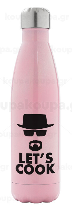 Let's cook, Μεταλλικό παγούρι θερμός Ροζ Ιριδίζον (Stainless steel), διπλού τοιχώματος, 500ml