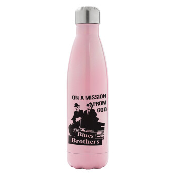 Blues brothers on a mission from God, Μεταλλικό παγούρι θερμός Ροζ Ιριδίζον (Stainless steel), διπλού τοιχώματος, 500ml