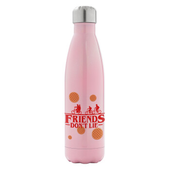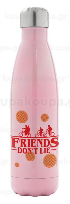Friends Don't Lie, Stranger Things, Μεταλλικό παγούρι θερμός Ροζ Ιριδίζον (Stainless steel), διπλού τοιχώματος, 500ml