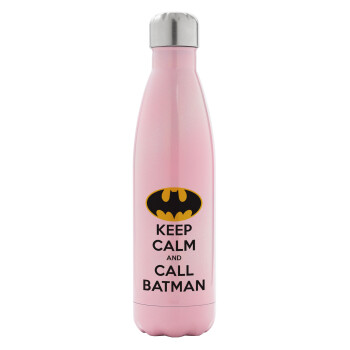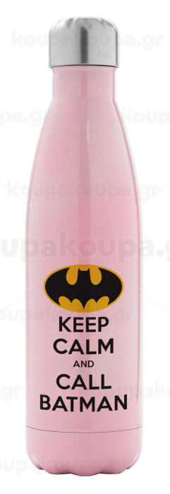 KEEP CALM & Call BATMAN, Μεταλλικό παγούρι θερμός Ροζ Ιριδίζον (Stainless steel), διπλού τοιχώματος, 500ml