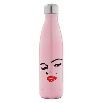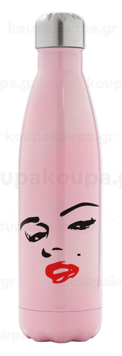 Marilyn Monroe, Μεταλλικό παγούρι θερμός Ροζ Ιριδίζον (Stainless steel), διπλού τοιχώματος, 500ml