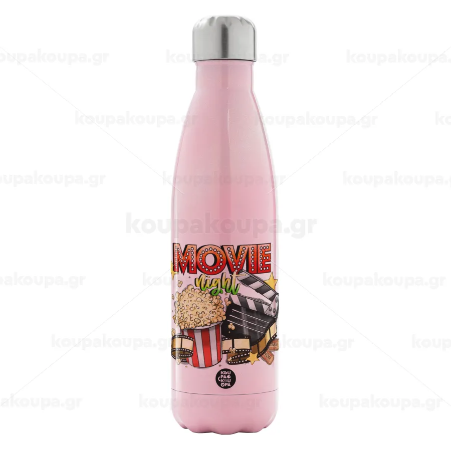 Movie night, Μεταλλικό παγούρι θερμός Ροζ Ιριδίζον (Stainless steel), διπλού τοιχώματος, 500ml