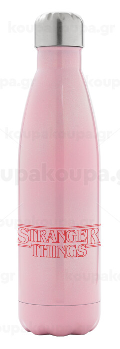 Stranger Things Logo, Μεταλλικό παγούρι θερμός Ροζ Ιριδίζον (Stainless steel), διπλού τοιχώματος, 500ml