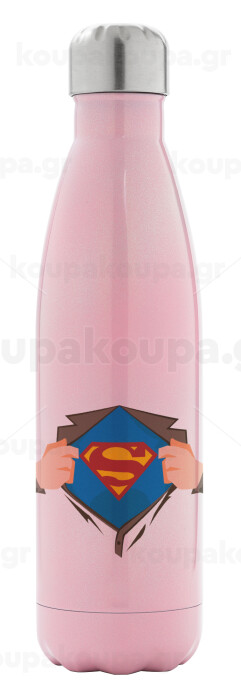 Superman hands, Μεταλλικό παγούρι θερμός Ροζ Ιριδίζον (Stainless steel), διπλού τοιχώματος, 500ml