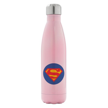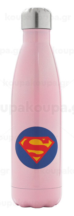 Superman, Μεταλλικό παγούρι θερμός Ροζ Ιριδίζον (Stainless steel), διπλού τοιχώματος, 500ml