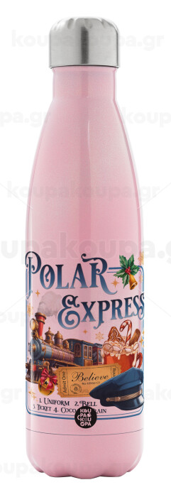 The Polar Express, Μεταλλικό παγούρι θερμός Ροζ Ιριδίζον (Stainless steel), διπλού τοιχώματος, 500ml