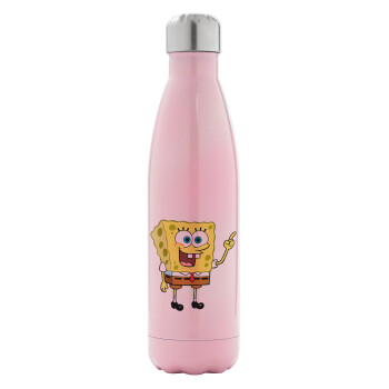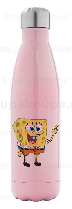 Μπομπ Σφουγγαράκης character, Μεταλλικό παγούρι θερμός Ροζ Ιριδίζον (Stainless steel), διπλού τοιχώματος, 500ml