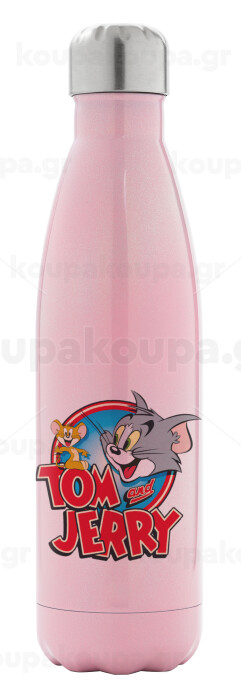 Τομ και Τζέρι, Μεταλλικό παγούρι θερμός Ροζ Ιριδίζον (Stainless steel), διπλού τοιχώματος, 500ml