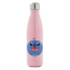 Lilo & Stitch blue, Μεταλλικό παγούρι θερμός Ροζ Ιριδίζον (Stainless steel), διπλού τοιχώματος, 500ml