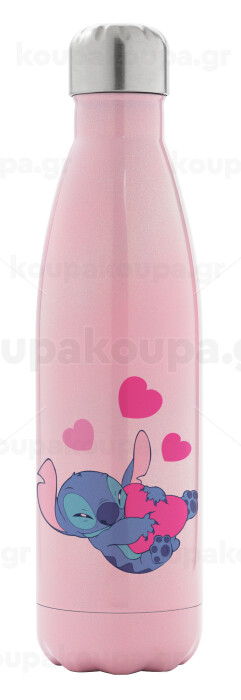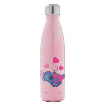 Lilo & Stitch hugs and hearts, Μεταλλικό παγούρι θερμός Ροζ Ιριδίζον (Stainless steel), διπλού τοιχώματος, 500ml