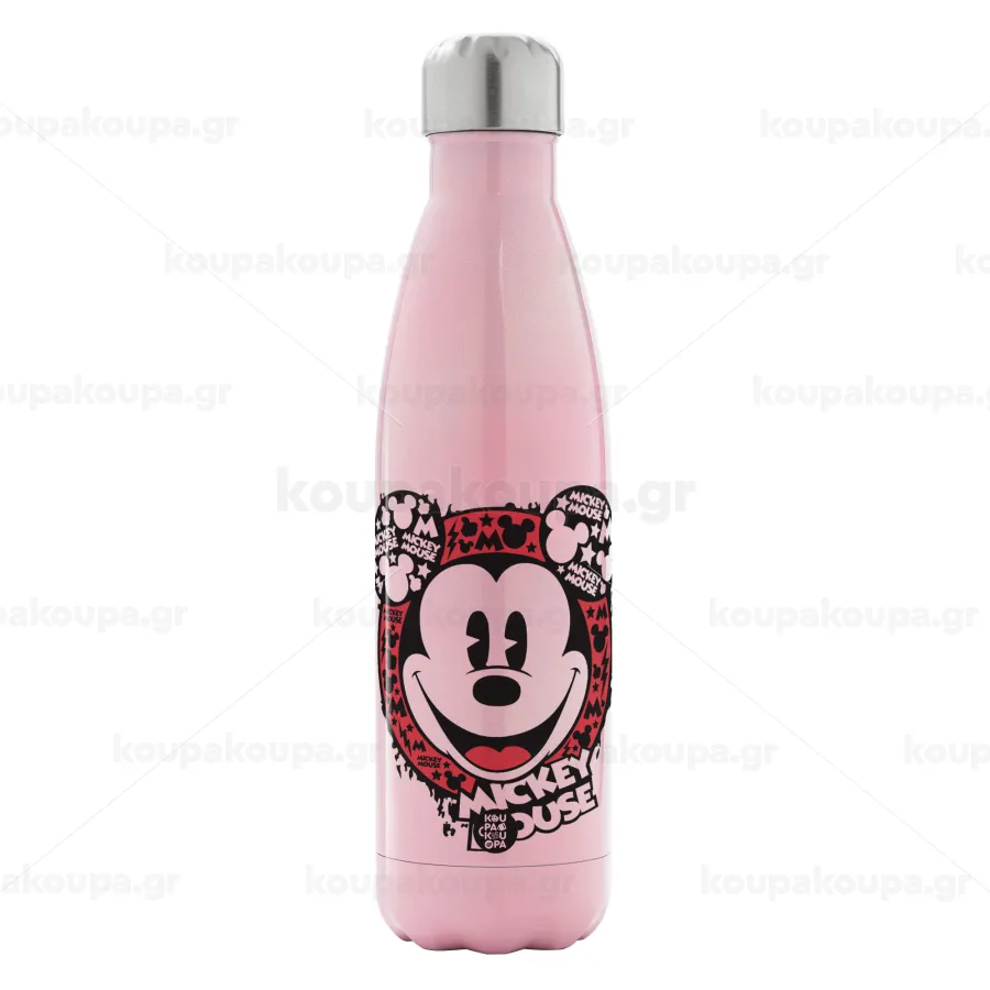 Mickey Mouse, Μεταλλικό παγούρι θερμός Ροζ Ιριδίζον (Stainless steel), διπλού τοιχώματος, 500ml