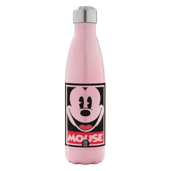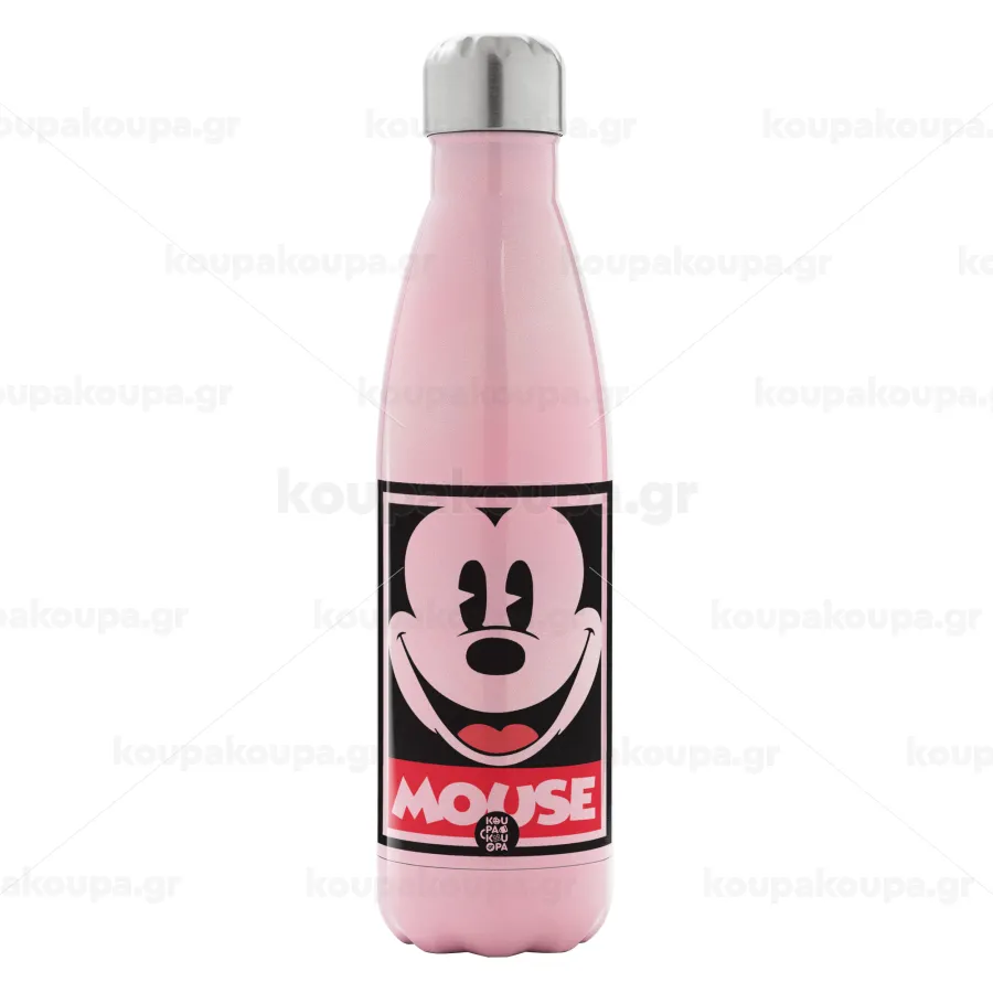 Μίκυ Μάους, Μεταλλικό παγούρι θερμός Ροζ Ιριδίζον (Stainless steel), διπλού τοιχώματος, 500ml