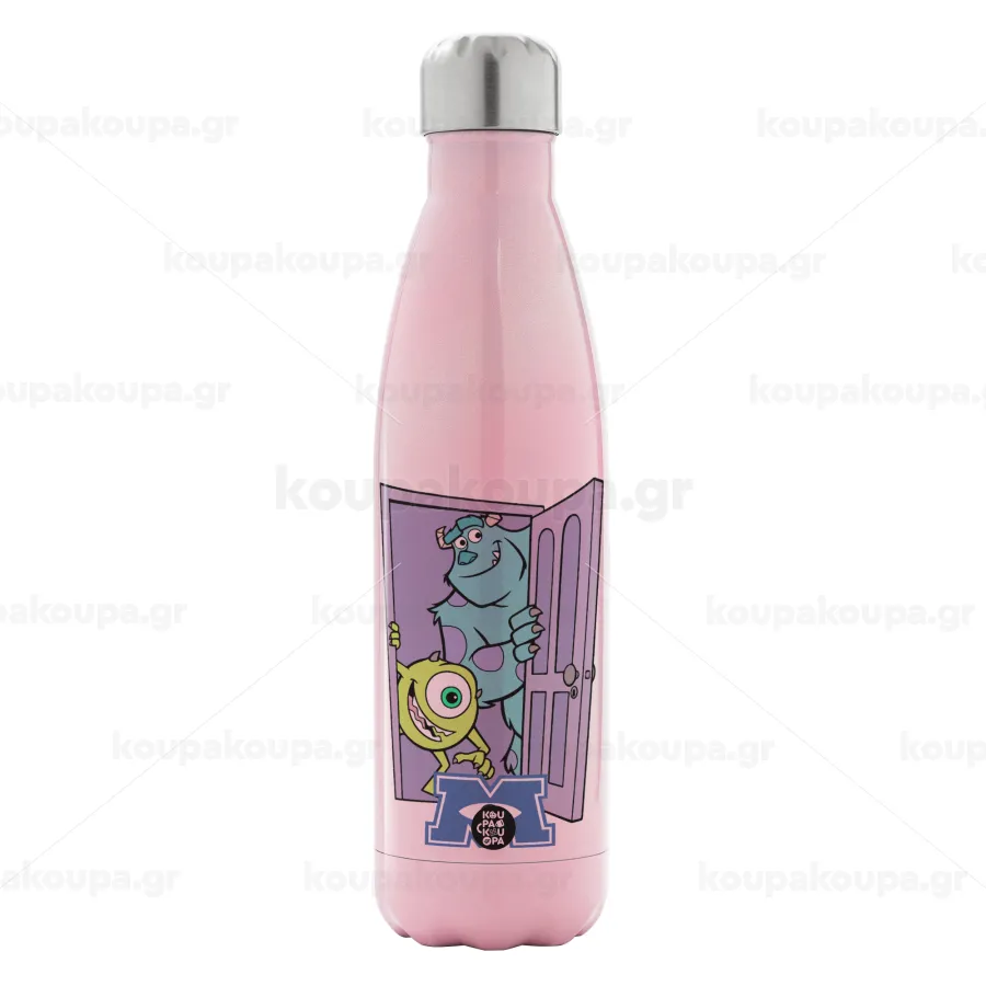 Monster inc, Μεταλλικό παγούρι θερμός Ροζ Ιριδίζον (Stainless steel), διπλού τοιχώματος, 500ml