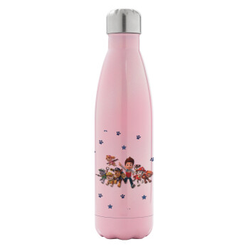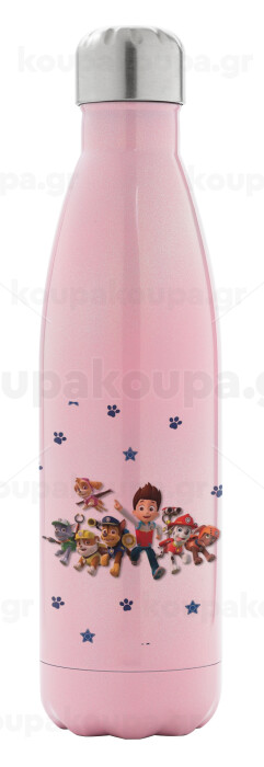 paw patrol, Μεταλλικό παγούρι θερμός Ροζ Ιριδίζον (Stainless steel), διπλού τοιχώματος, 500ml