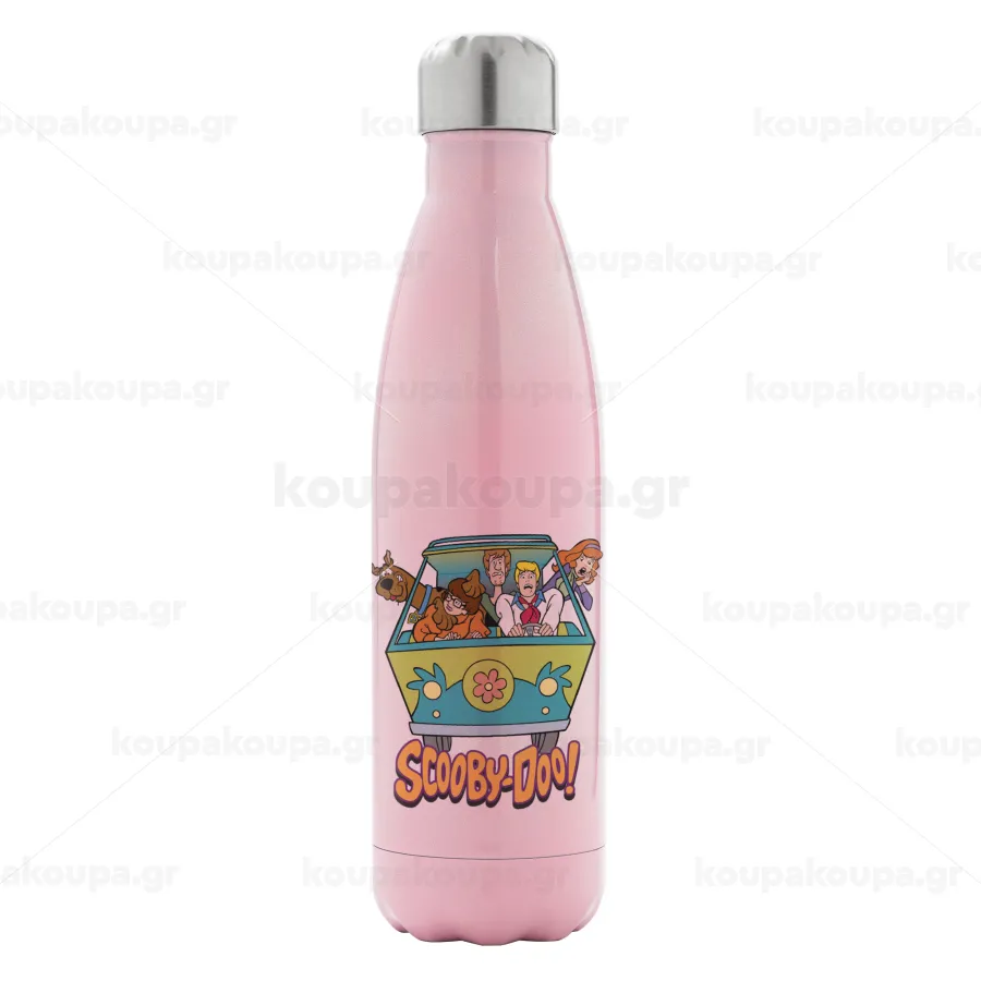 Scooby Doo car, Μεταλλικό παγούρι θερμός Ροζ Ιριδίζον (Stainless steel), διπλού τοιχώματος, 500ml