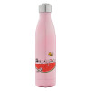 Snoopy summer, Μεταλλικό παγούρι θερμός Ροζ Ιριδίζον (Stainless steel), διπλού τοιχώματος, 500ml