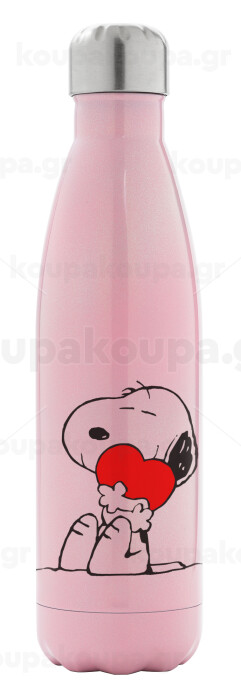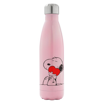 Snoopy, Μεταλλικό παγούρι θερμός Ροζ Ιριδίζον (Stainless steel), διπλού τοιχώματος, 500ml