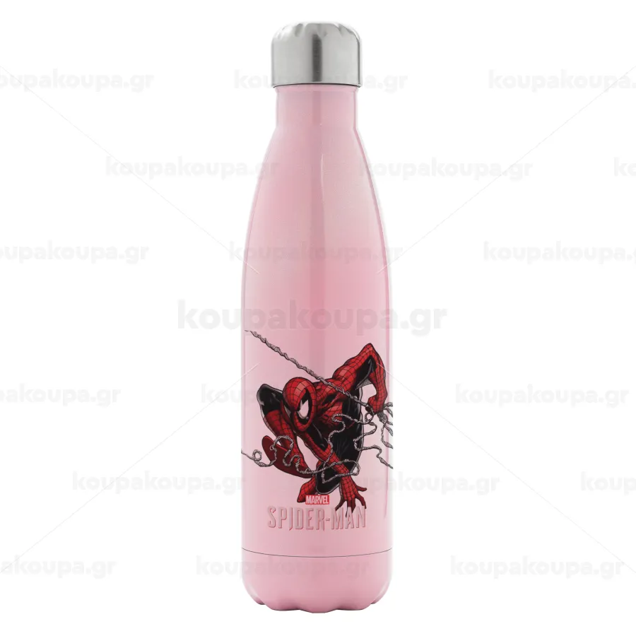 Spider-man, Μεταλλικό παγούρι θερμός Ροζ Ιριδίζον (Stainless steel), διπλού τοιχώματος, 500ml