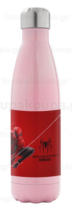 Spiderman, Μεταλλικό παγούρι θερμός Ροζ Ιριδίζον (Stainless steel), διπλού τοιχώματος, 500ml