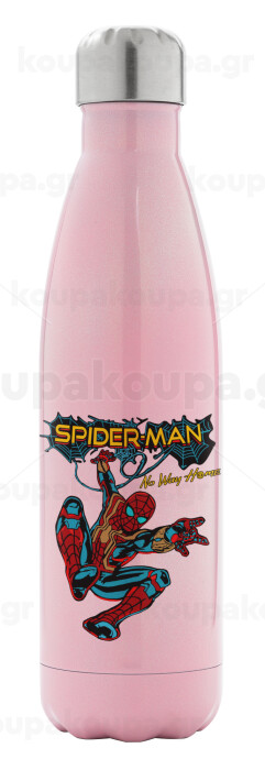 Spiderman no way home, Μεταλλικό παγούρι θερμός Ροζ Ιριδίζον (Stainless steel), διπλού τοιχώματος, 500ml