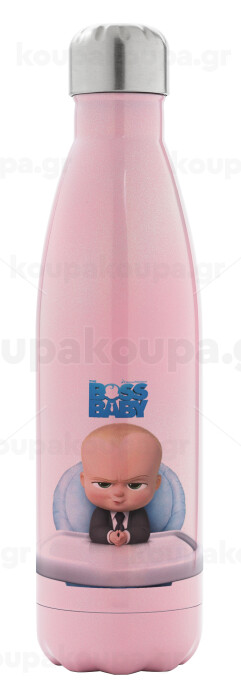 The boss baby, Μεταλλικό παγούρι θερμός Ροζ Ιριδίζον (Stainless steel), διπλού τοιχώματος, 500ml