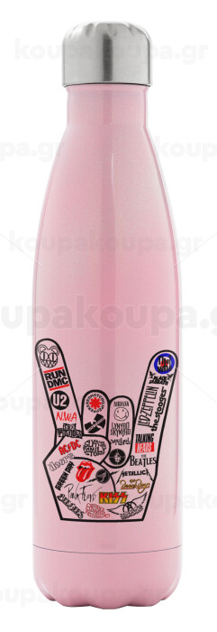 Best Rock Bands hand, Μεταλλικό παγούρι θερμός Ροζ Ιριδίζον (Stainless steel), διπλού τοιχώματος, 500ml