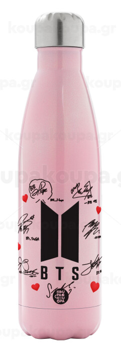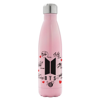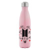 BTS signs, Μεταλλικό παγούρι θερμός Ροζ Ιριδίζον (Stainless steel), διπλού τοιχώματος, 500ml