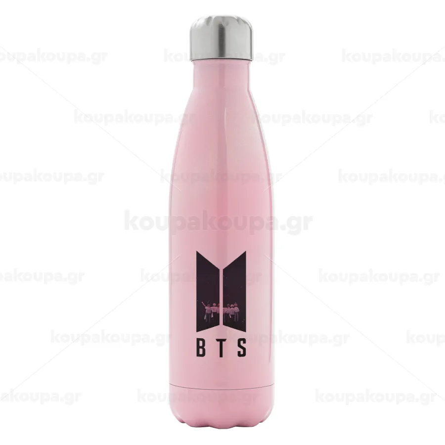 BTS, Μεταλλικό παγούρι θερμός Ροζ Ιριδίζον (Stainless steel), διπλού τοιχώματος, 500ml