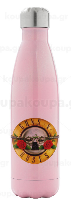 Guns N' Roses, Μεταλλικό παγούρι θερμός Ροζ Ιριδίζον (Stainless steel), διπλού τοιχώματος, 500ml