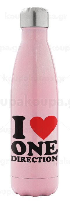 I Love, One Direction, Μεταλλικό παγούρι θερμός Ροζ Ιριδίζον (Stainless steel), διπλού τοιχώματος, 500ml