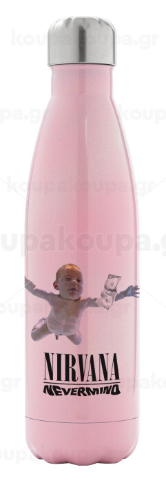 Nirvana nevermind, Μεταλλικό παγούρι θερμός Ροζ Ιριδίζον (Stainless steel), διπλού τοιχώματος, 500ml