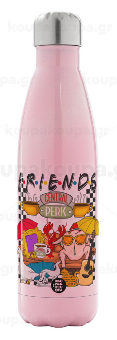 Τα φιλαράκια, Μεταλλικό παγούρι θερμός Ροζ Ιριδίζον (Stainless steel), διπλού τοιχώματος, 500ml