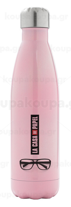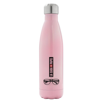 la professor, γυαλιά, Μεταλλικό παγούρι θερμός Ροζ Ιριδίζον (Stainless steel), διπλού τοιχώματος, 500ml