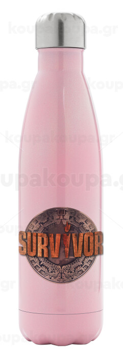Survivor, Μεταλλικό παγούρι θερμός Ροζ Ιριδίζον (Stainless steel), διπλού τοιχώματος, 500ml