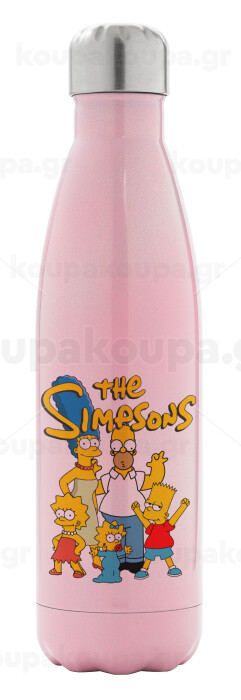 The Simpsons, Μεταλλικό παγούρι θερμός Ροζ Ιριδίζον (Stainless steel), διπλού τοιχώματος, 500ml