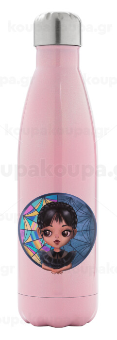 Wednesday big eyes, Μεταλλικό παγούρι θερμός Ροζ Ιριδίζον (Stainless steel), διπλού τοιχώματος, 500ml