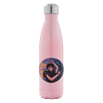 Wednesday dance, Μεταλλικό παγούρι θερμός Ροζ Ιριδίζον (Stainless steel), διπλού τοιχώματος, 500ml